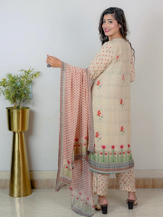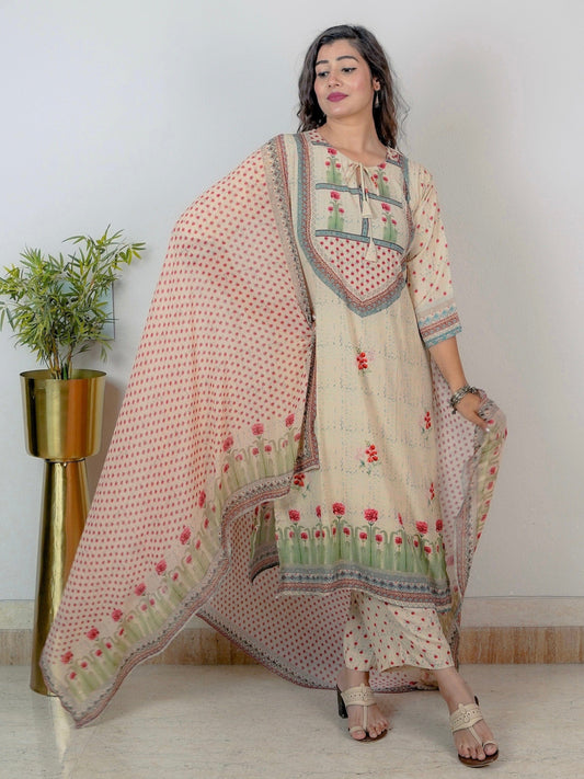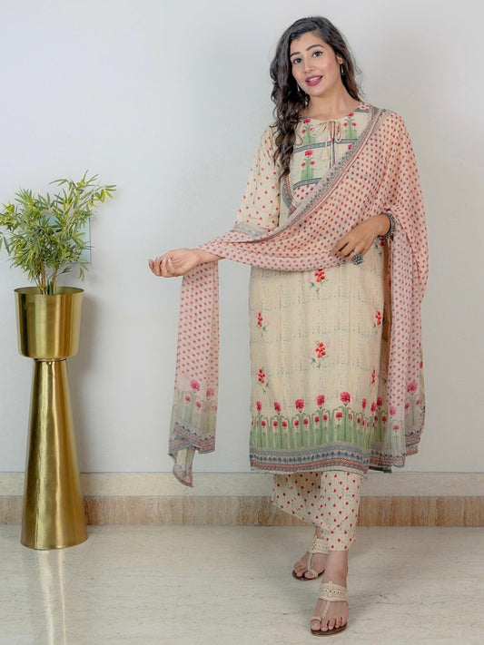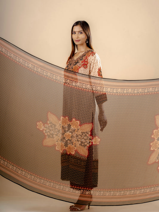Navy blue and Beige Booti Digital Print Kurta - Jeeaayanu Fashion
