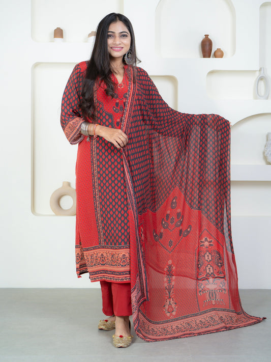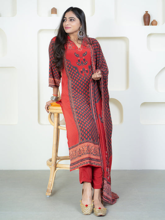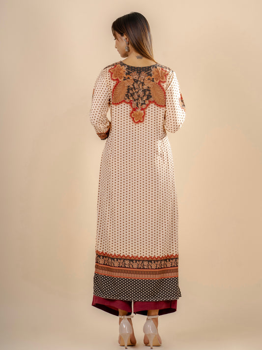 Maroon Placement Kurta Set - Jeeaayanu Fashion