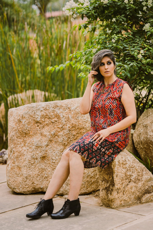 Red Geomentric Print Tunic Dress - Jeeaayanu Fashion