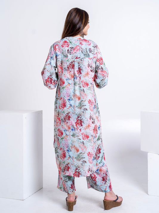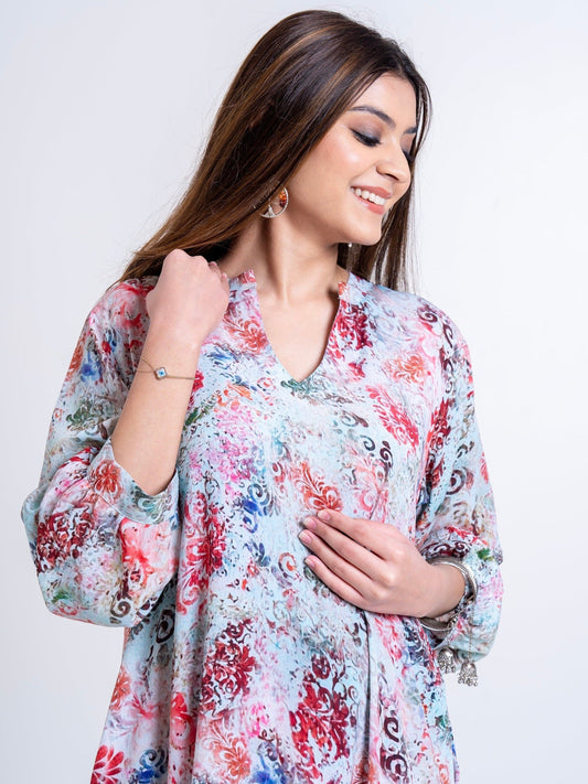 Turquoise Motif Kurta - Jeeaayanu Fashion