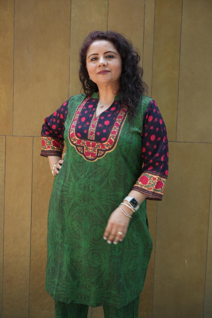 its a lovely outfit, beautiful pattern & colour, flowy fabric, can be worn in summers also. Also i had to opt for smaller size & the return process was so smooth!…thank you😊