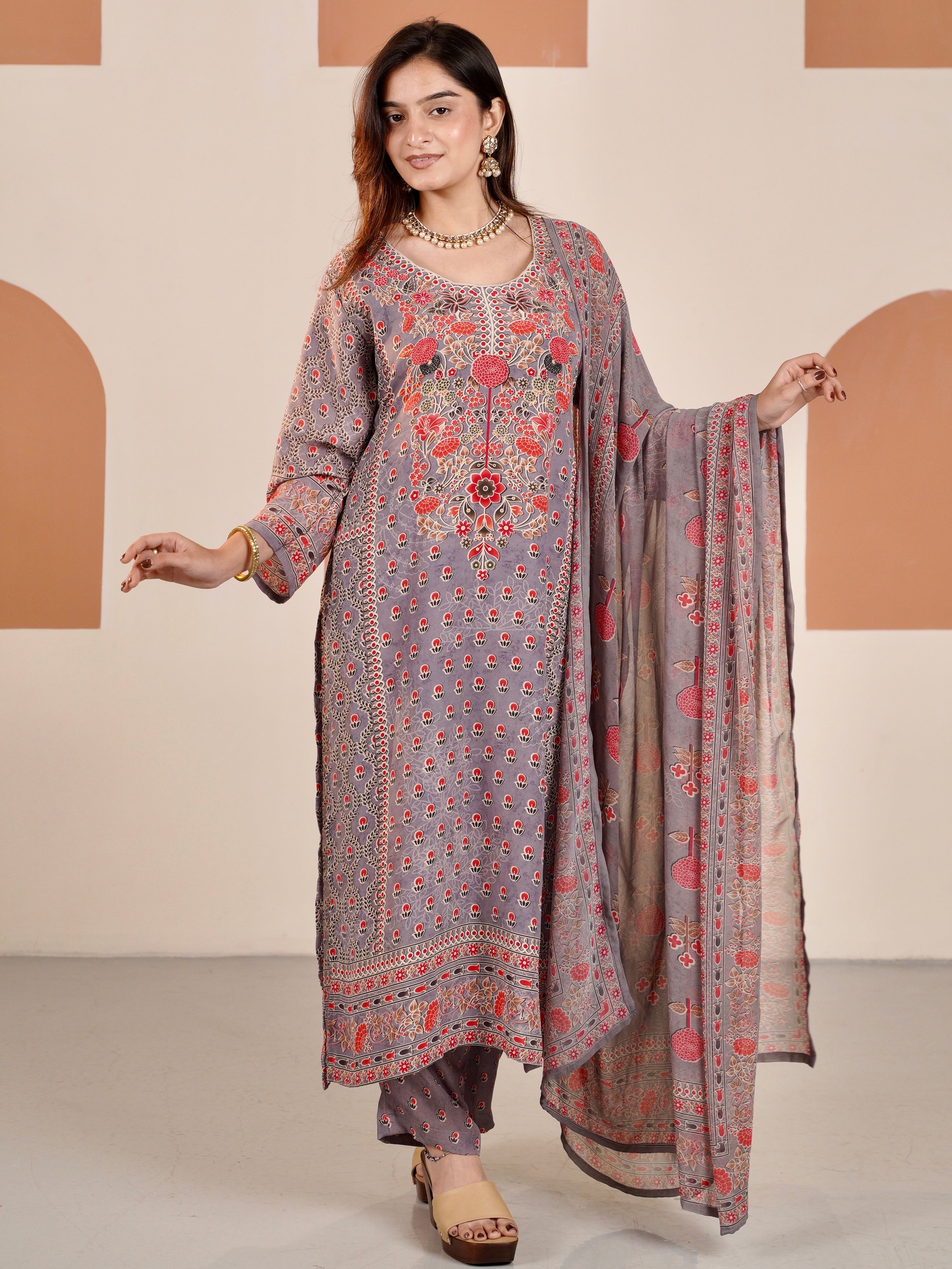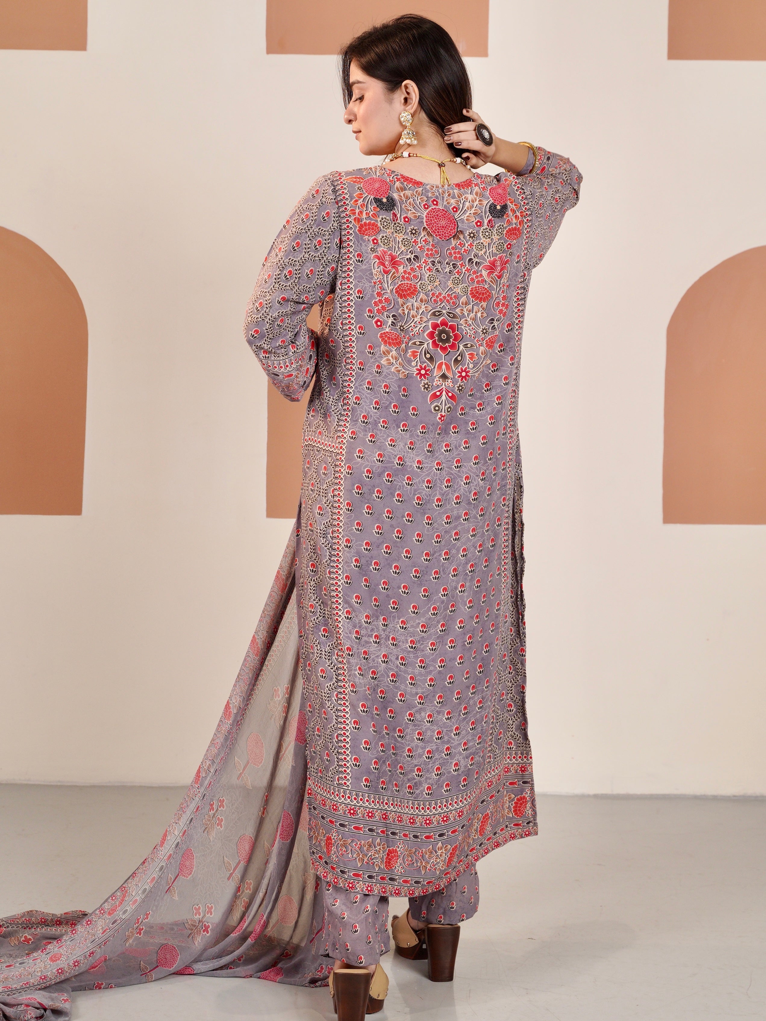 Lavender Grey Crepe Suit Set