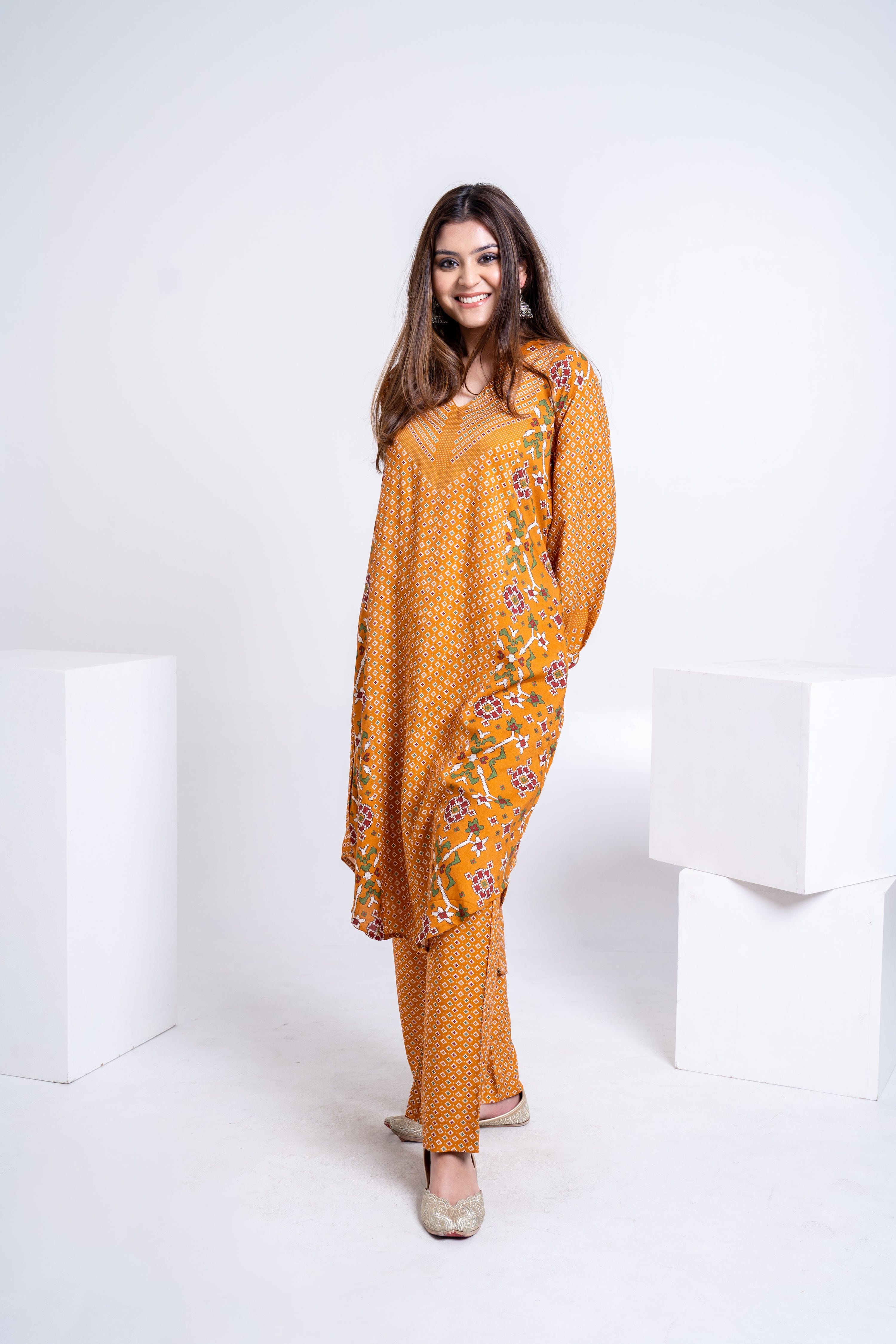 Mustard Patola Kurta Coord Set