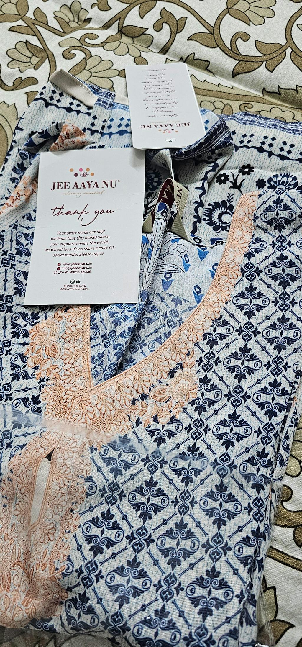 "Jee Aaya Nu" Like the name says it all... The vibes are just awesome of their creation, be it the choice pf fabric or the designs or the patterns... And the comfort is of a different level.. The softness, the smoothness, the flow of the fabric and the look in just amazing.. Keep up the good work👍👍👍 Last but not the least very prompt customer service which is very rare these days... Tanu (Rep of Jee Aaya Nu) is too good at her work ♥️ Thanks.